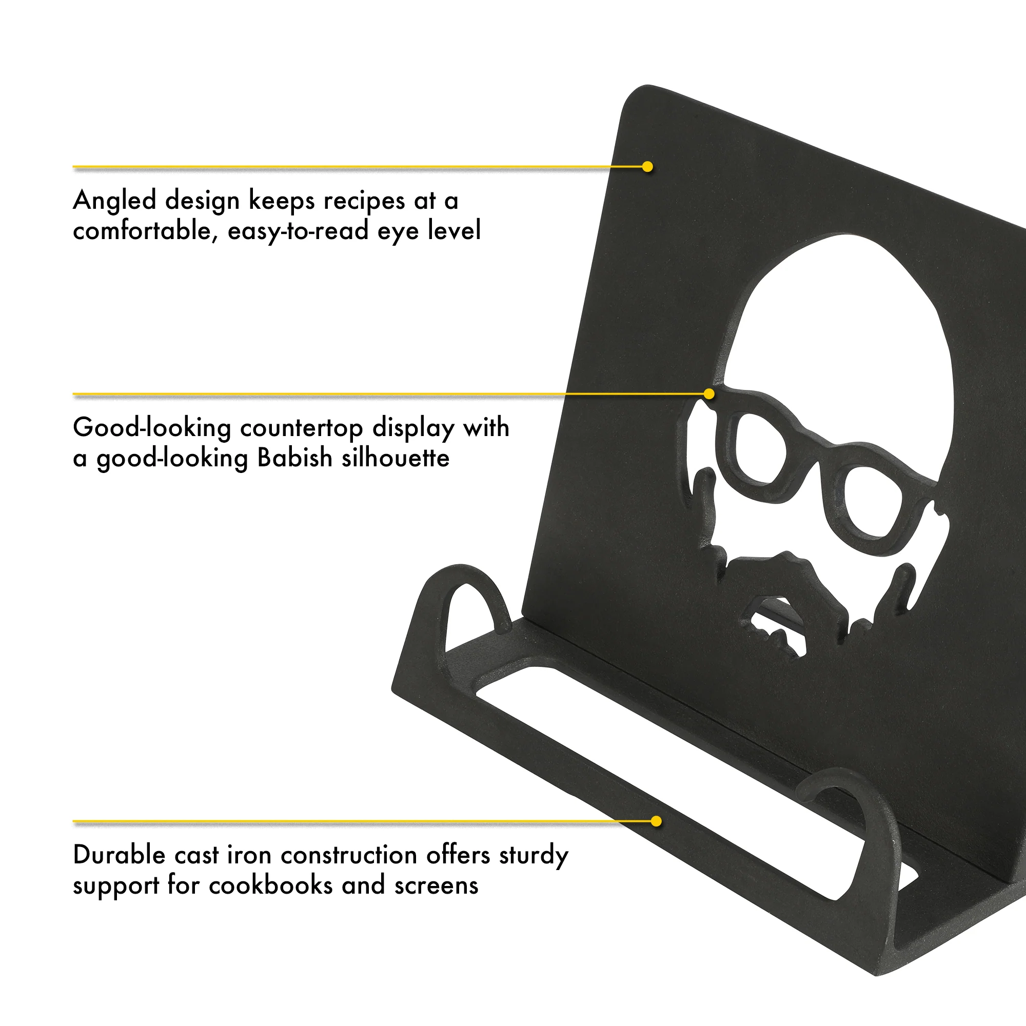 Read and follow recipes with maximum coolness. The Babish Cast Iron Cookbook Holder is the designated cooking assistant, next to the (home) sous-chef. It securely holds up any book or tablet while you pay attention to the instructions, food prep, and cooking. The durable cast iron frame offers support and stability. When not in use, leave it on the countertop as an accent piece with a character of its own.