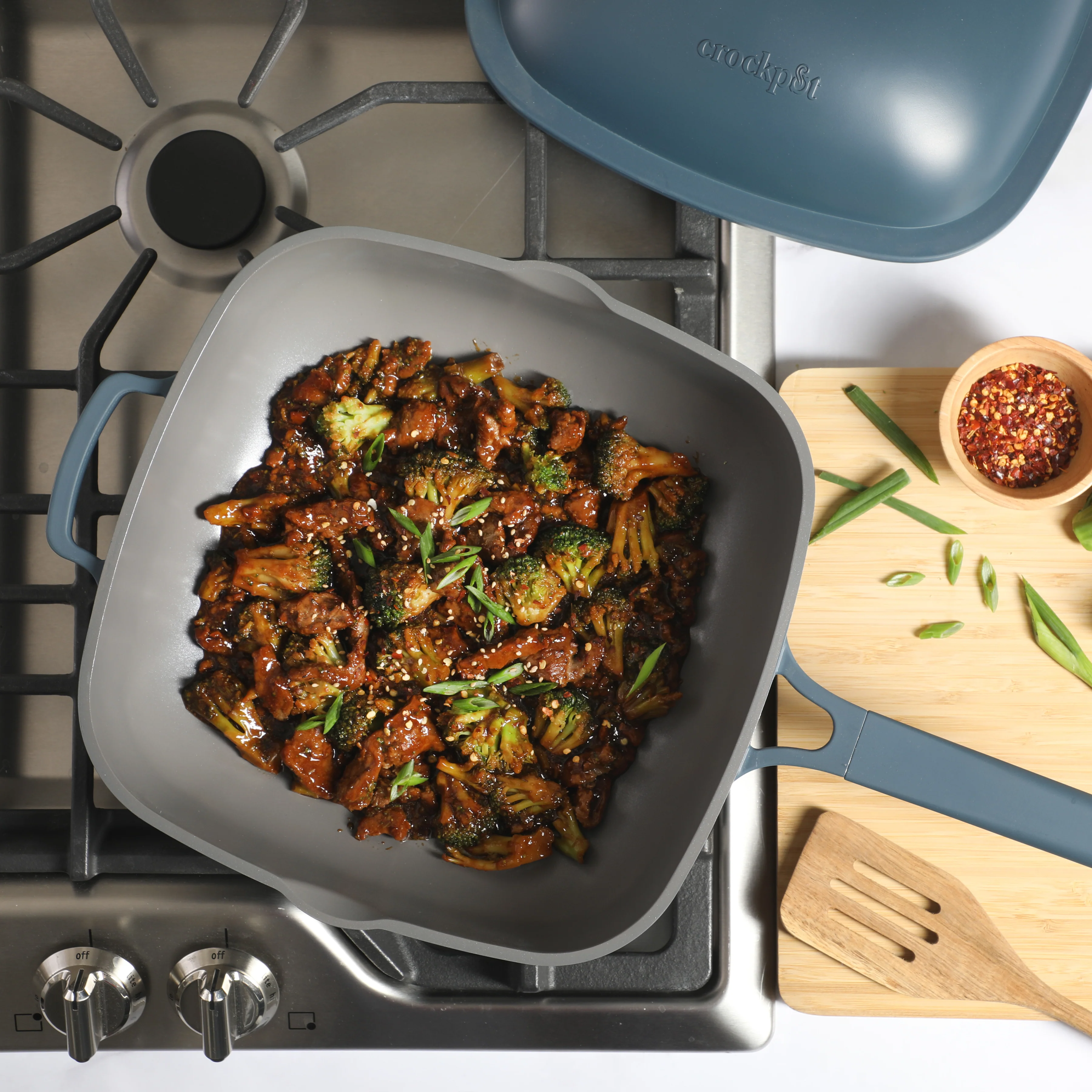 - MADE FOR EVERYDAY COOKING: Cast aluminum cookware provides excellent heating to deliver evenly-cooked dishes. Built for durability and everyday use, this sauté pan features a special, soft square shape to accommodate more ingredients and family-style servings of stews and soups. The four, rounded corners function as gentle pour spouts to smoothly transfer the last bits of food or excess oils into another container.