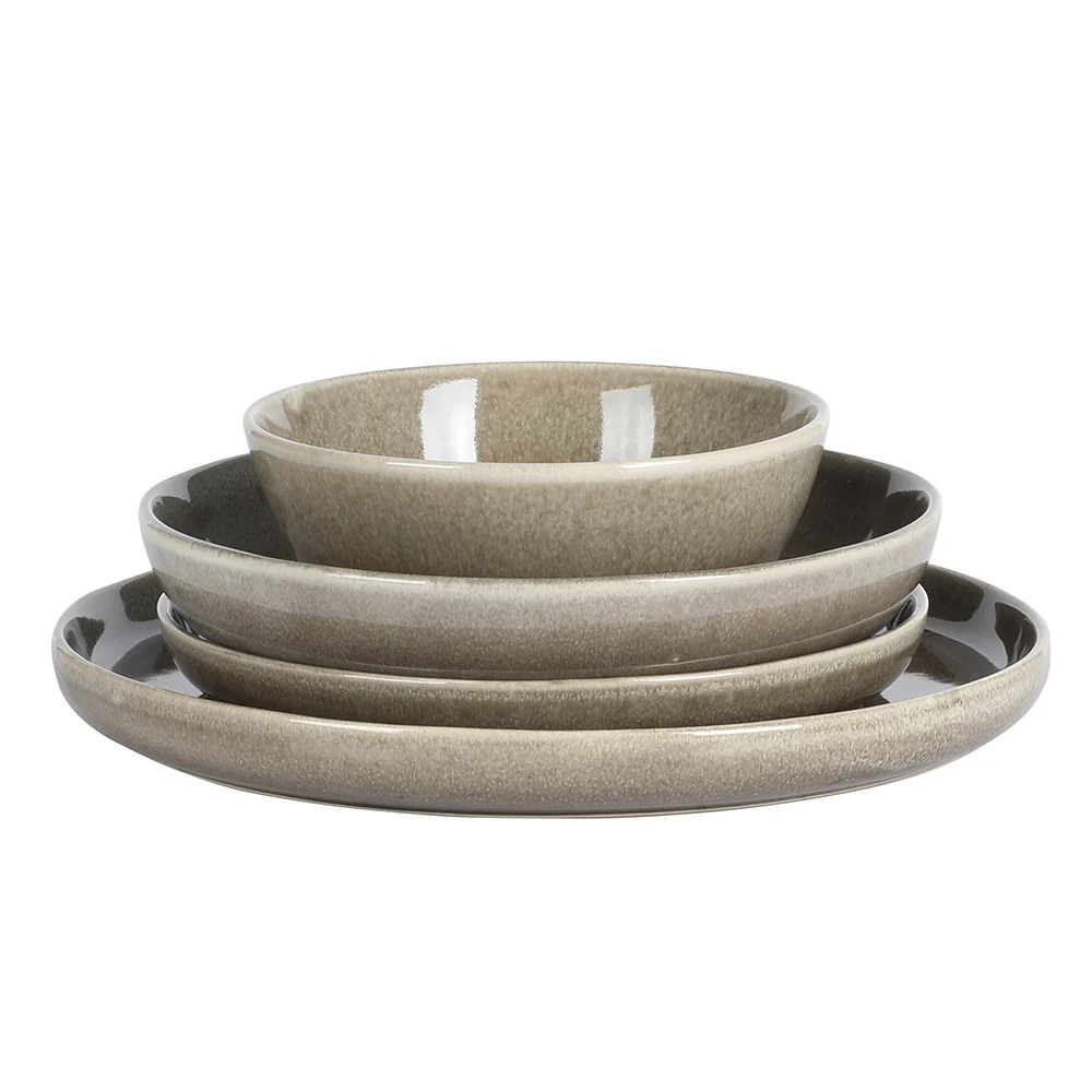 Plate and serve delicious meals with the Berea 16-piece Reactive Stoneware Dinnerware Set from Gibson Home. Sturdy stoneware craftsmanship offers strength and durability to hold up to everyday dining and dishwashing. Each plate and bowl features a brilliant, reactive glaze to produce variegated patterns, making each piece unique and rich in character. As a collection of stunning home staples, this dinnerware set is a tasteful gift idea for all occasions. Loved for its practical use and decorative function, dinnerware sets also express your impeccable taste and well wishes to family, friends, early nesters, and newlyweds. Dishwasher and microwave safe.