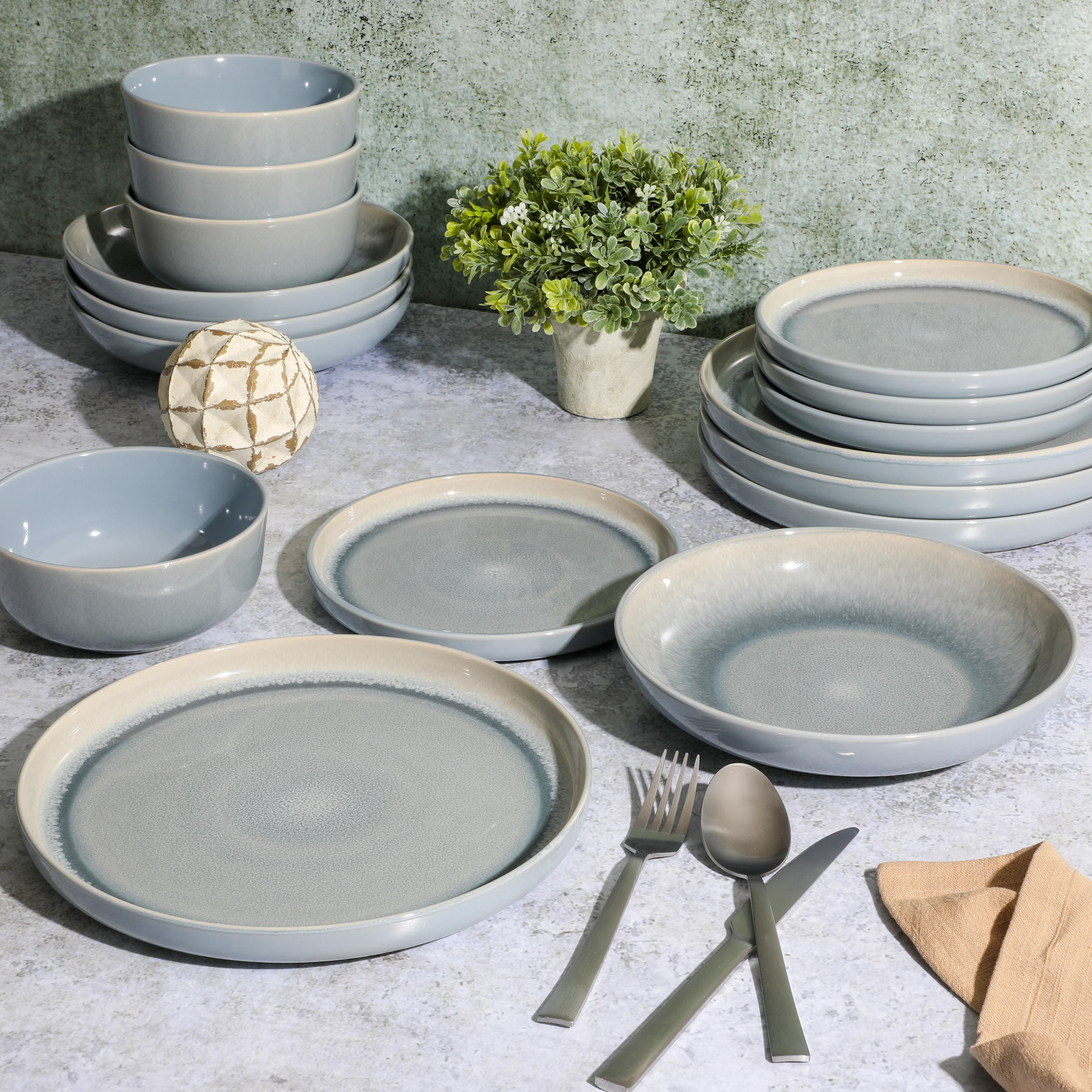 Gibson Elite Juno Moon 16-Piece Double Bowl Reactive Stoneware Dinnerware Set