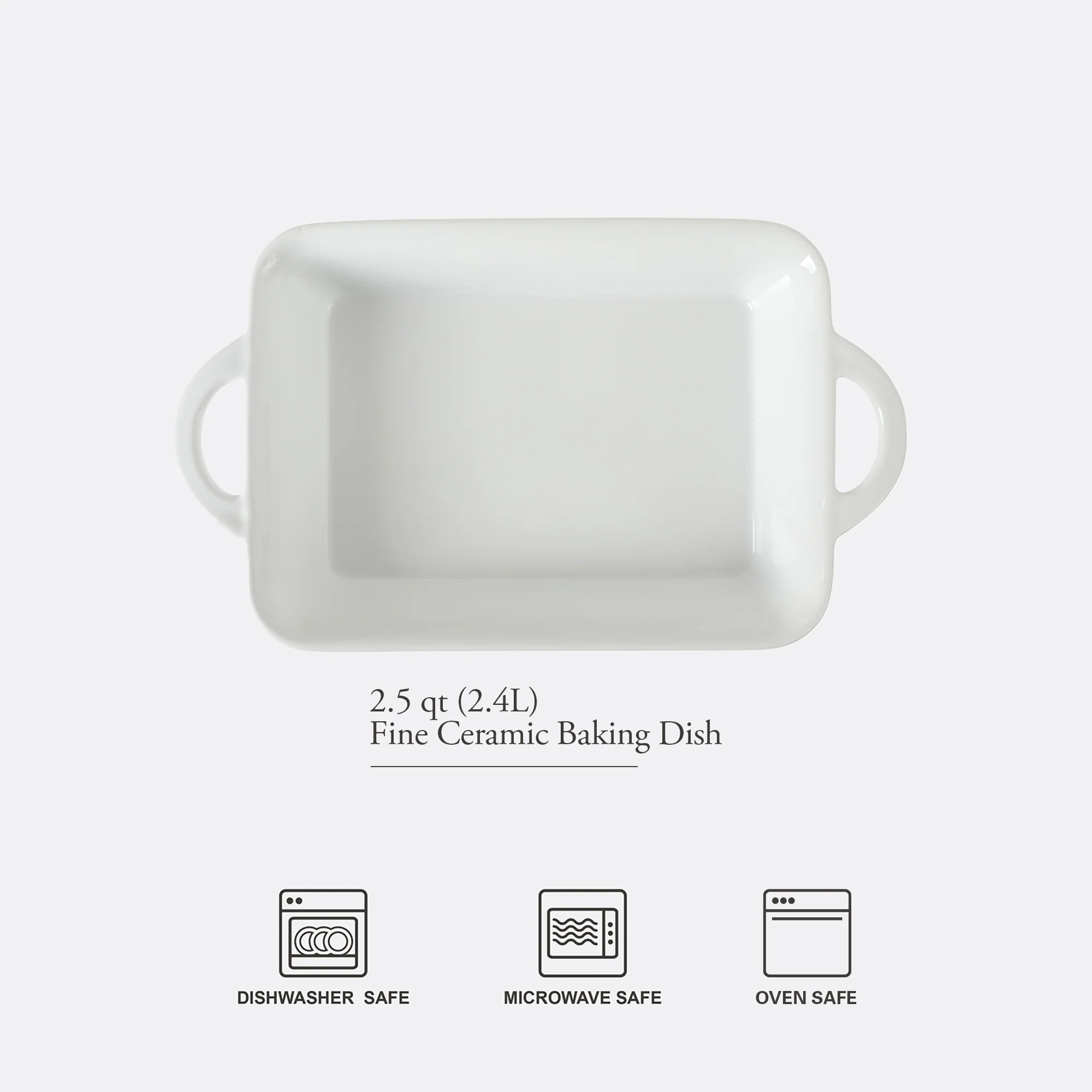 - A BOX INCLUDES: One 2.5-quart fine ceramic baking dish