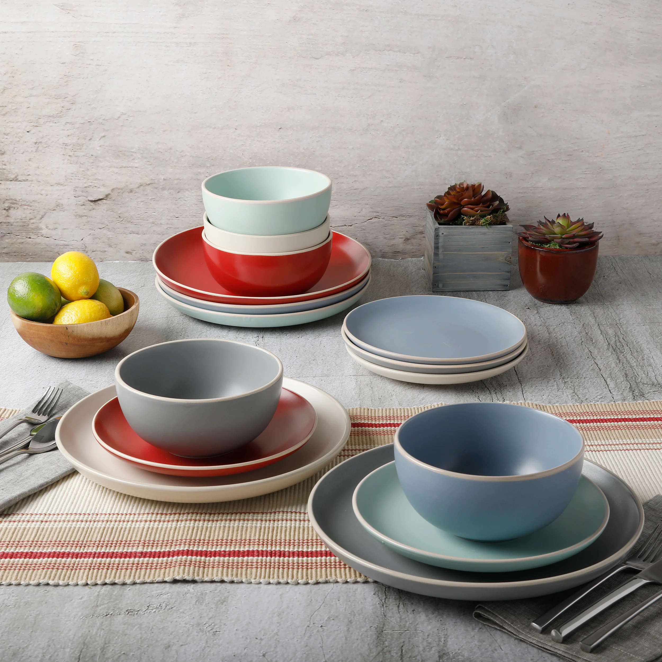 Gibson Home Rockaway 12-Piece Stoneware Dinnerware Set