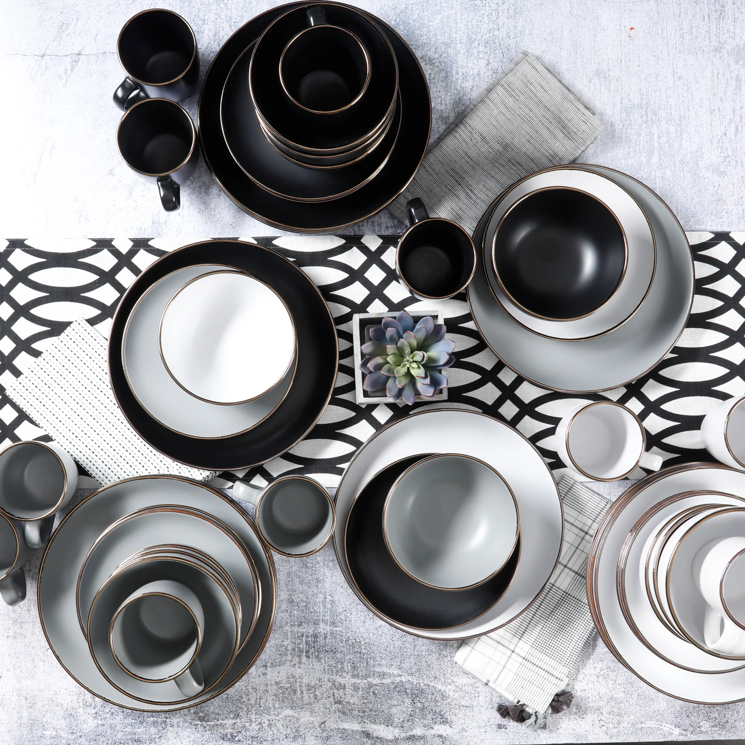The Gibson Home Rockaway 16-piece Stoneware Dinnerware Set is the perfect meeting place between contemporary style and everyday functionality. Every piece of this dish set has a soft matte glaze finish on a stoneware material that brings the latest on-trend colors to your dish collection. The Rockaway classic coupe shape looks great with any table setting and provides additional surface area for showing off delicious homemade meals. No matter what the occasion is the Gibson Home Rockaway 16-piece plate and bowls Set is a set you need in your home. All items are made of durable stoneware that is dishwasher and microwave safe. This plate and bowls set offers service for four including 4 dinner plates, 4 dessert plates, 4 bowls, and 4 mugs. Whether you’re looking for a dishes set for 4, 8, or 12, this composition is perfect for all family size. Bring fashionable elegance to your home today with the Rockaway dinnerware set and make sure to check out other color options for mix and match opportunities.