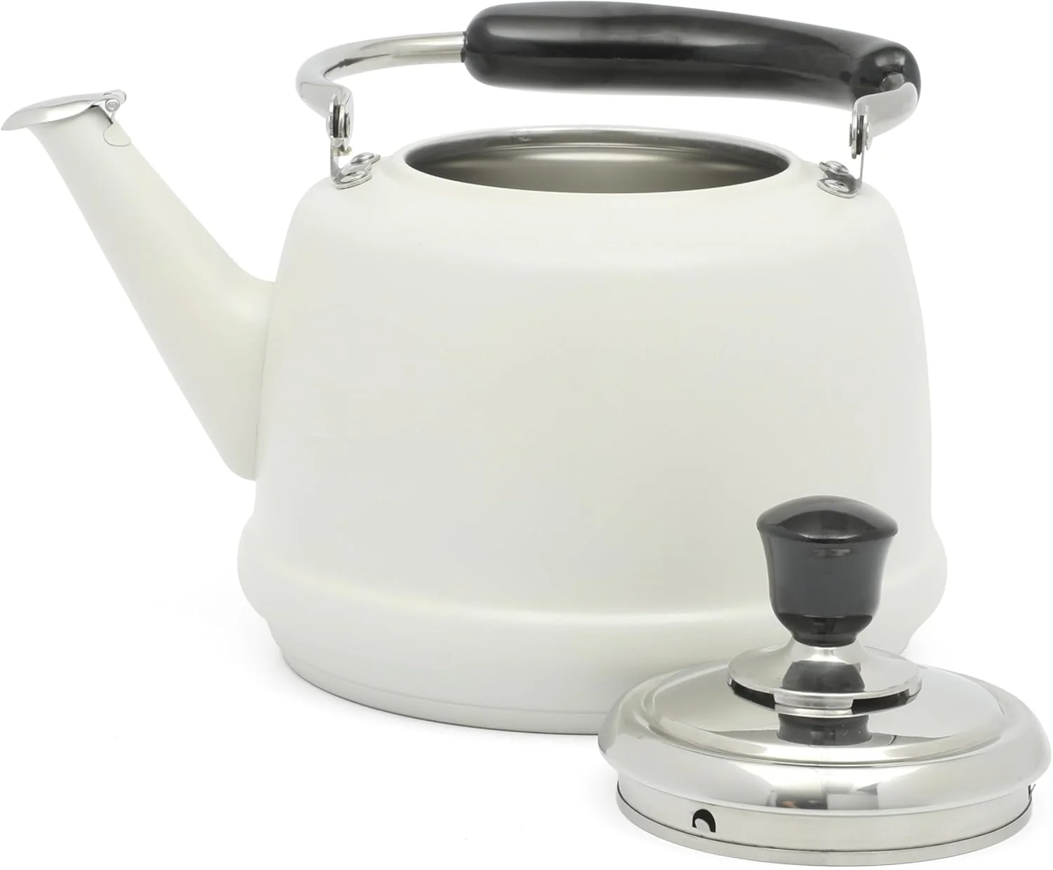 A TEATIME CLASSIC: Perfect for preparing hot water for coffee breaks or tea service, this teakettle takes a vintage-inspired shape that seamlessly transitions from the stovetop to the table. The whistling spout signals that the water has reached boiling point and cues the host to start serving and entertaining.