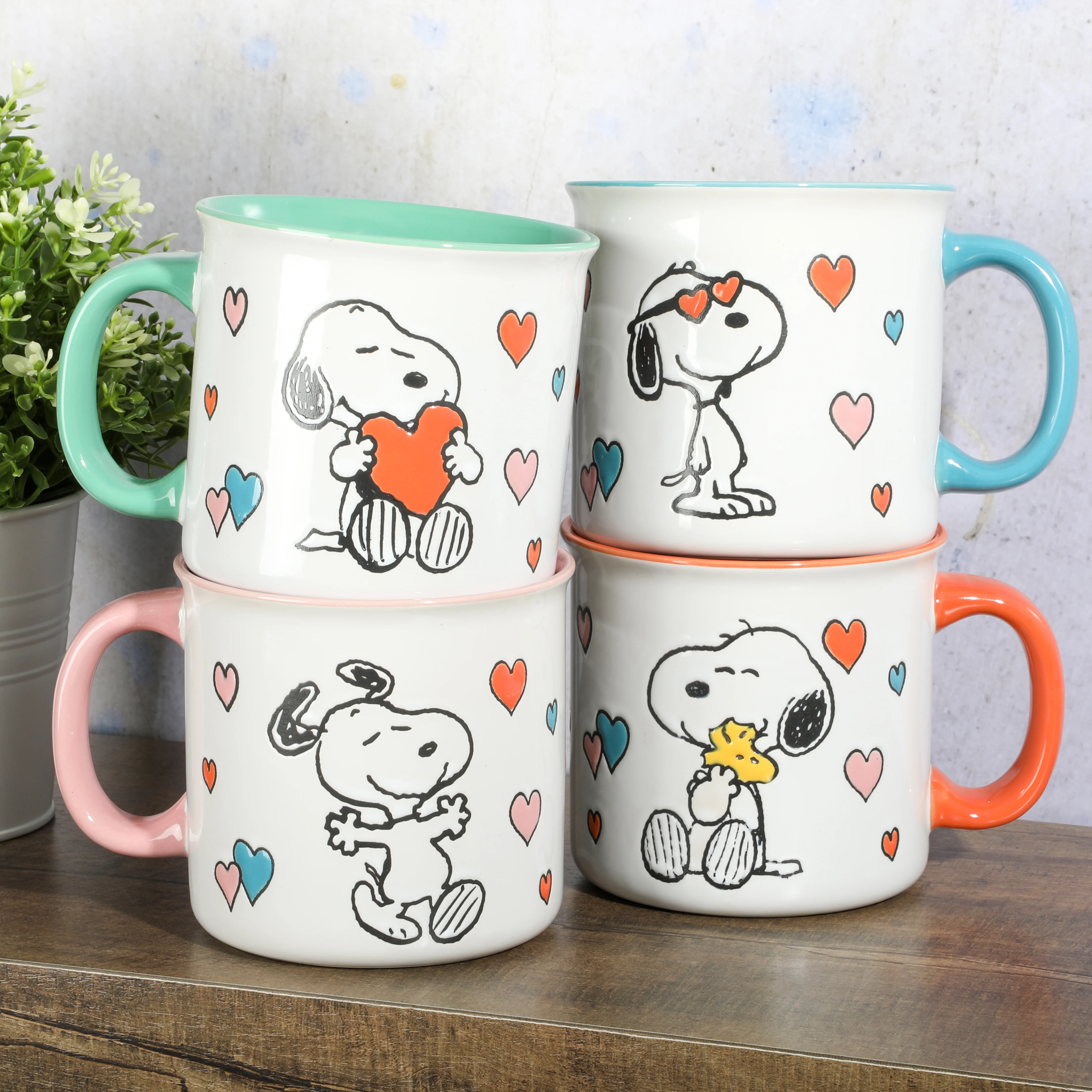 Peanuts Mothers Love 4-Pack Large 21oz Camper Stoneware Mug Set